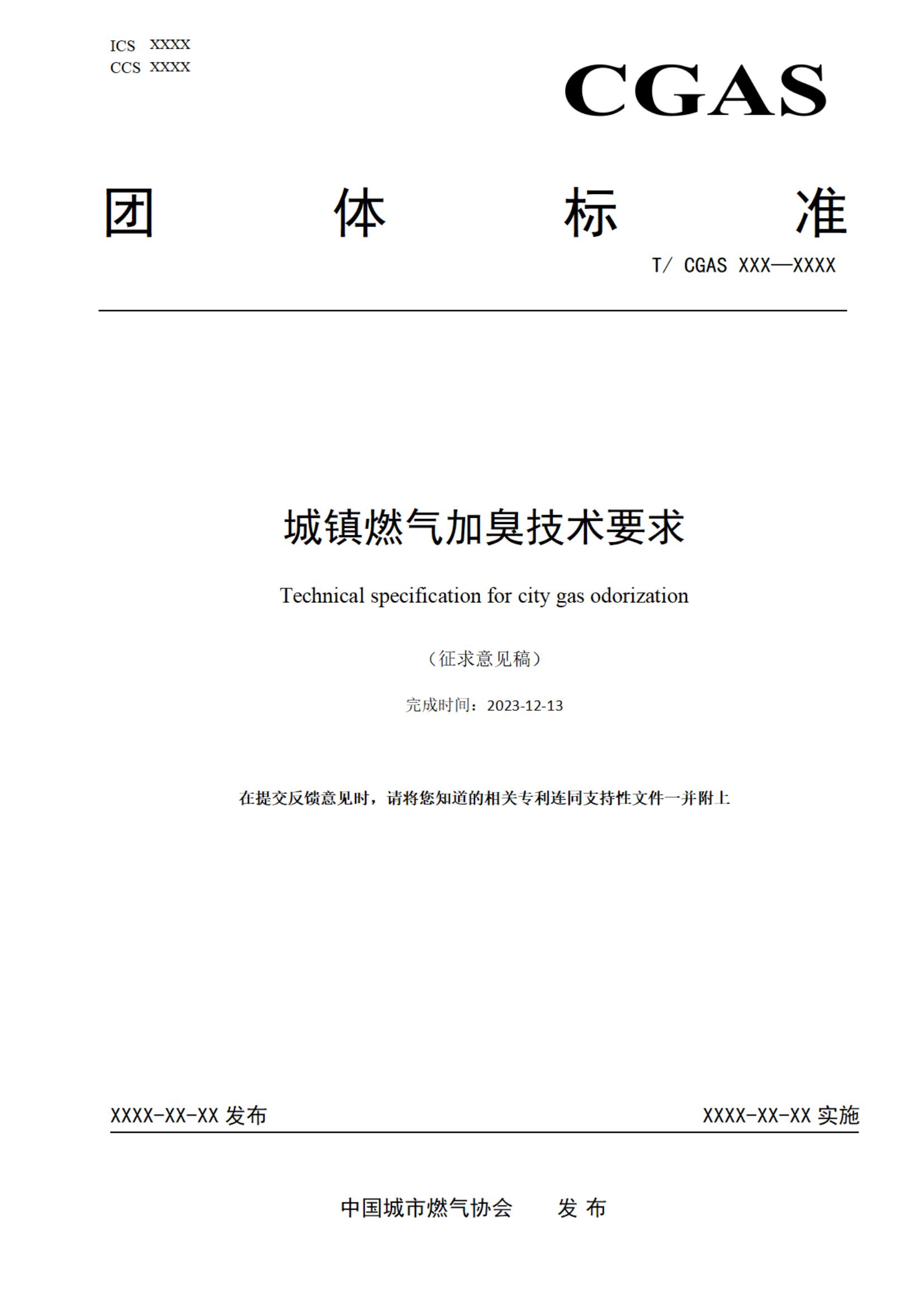 城镇燃气加臭技术要求-征求意见稿